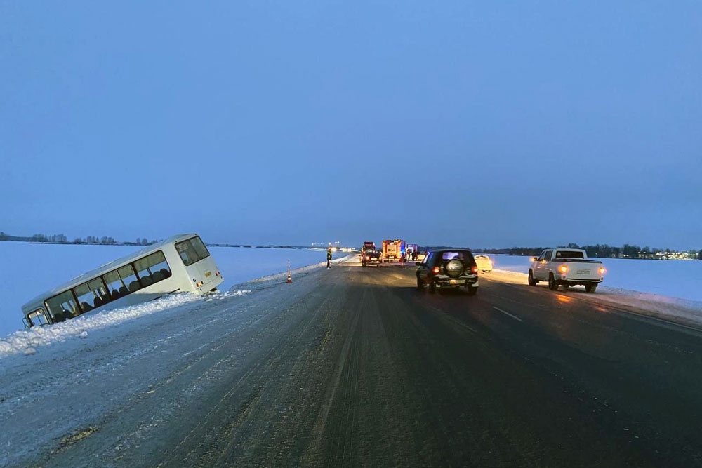 Удар был достаточно сильным для того, чтобы более тяжелый автобус отбросило в кювет. В его салоне, кроме 49-летнего водителя, был один пассажир.