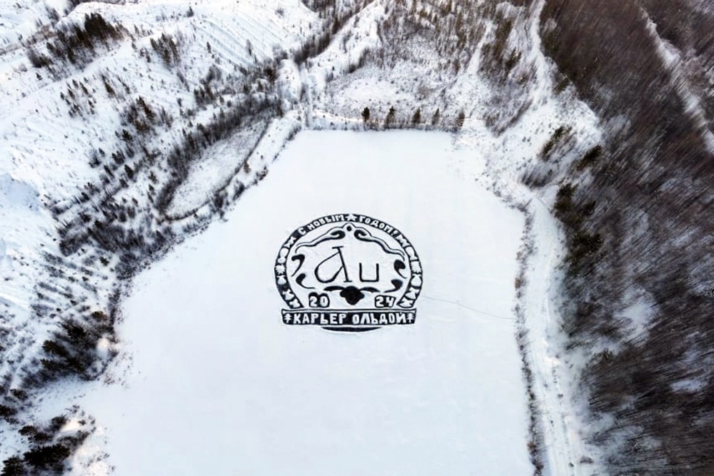 Суровые машинисты драги прииска "Соловьевский" вышли на лед речки в сорокаградусный мороз и за три дня изваяли новогоднюю красоту.