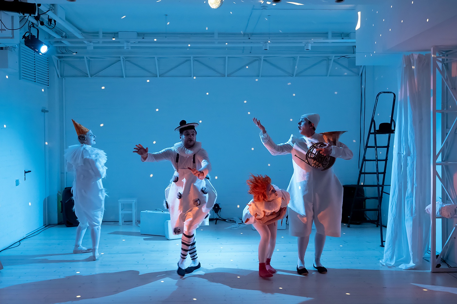 В спектакле заняты молодые воронежские артисты. Светлана Строева, Мария Соловей и Александр Габура служат в Никитинском театре, Георгий Яковлев - в Камерном. Всем, кроме Светланы, досталось по нескольку ролей, так что зритель может в полной мере насладиться мгновенными перевоплощениями. Едва к костюмам Пьеро и Пьеретт добавляется новая деталь - картуз или ушанка, шляпка-пятачок или перчатки-лапки, огненный парик или цилиндр (художник - Юрий Сучков), как у актеров враз меняется мимика, пластика, интонации. Подобные аттракционы радуют в любом возрасте, так что на "Каштанку" можно смело приходить и с детьми от семи лет, и без оных.