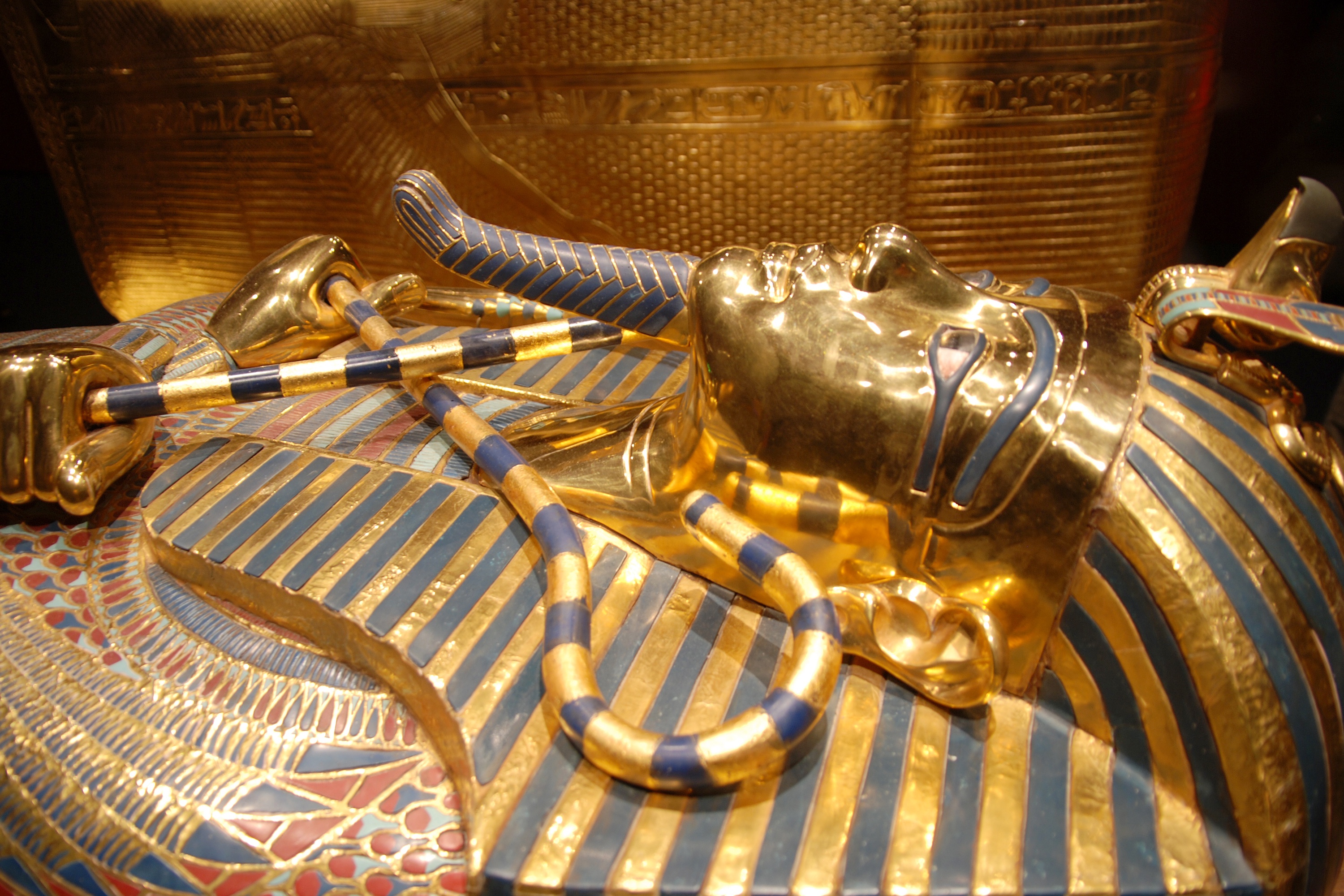 Проделав небольшое отверстие, Картер заглянул внутрь. В тусклом свете керосиновой лампы заиграло золото. Роскошная колесница, царский трон, вазы, несколько ларей, множество ценнейших артефактов. И дверь с надписью "Небхепрура". Усыпальница.