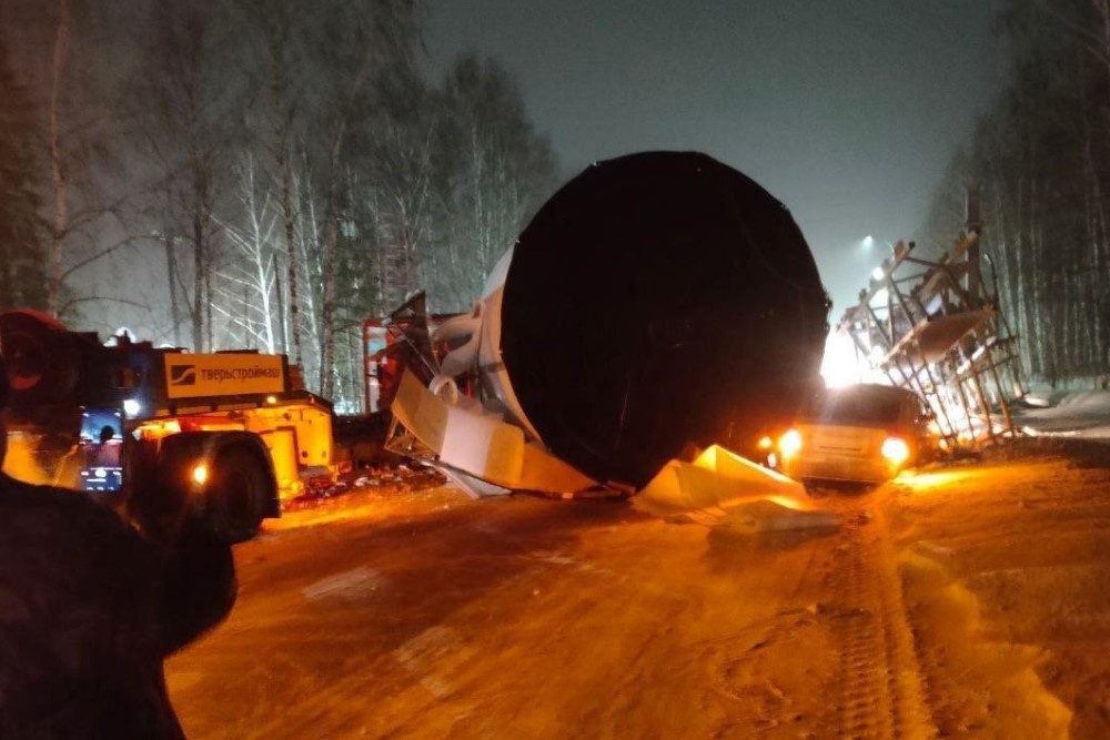 "Водитель грузового автомобиля 1978 года рождения, при проезде эстакады не учел габариты транспортного средства, повредил дорожную рамную конструкцию, вследствие чего допустил падение цистерны, - добавили в МВД региона.