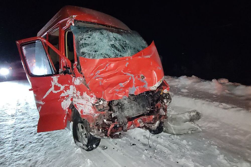 По предварительным данным, водитель микроавтобуса выехал на встречную полосу, где и столкнулся с рейсовым автобусом.