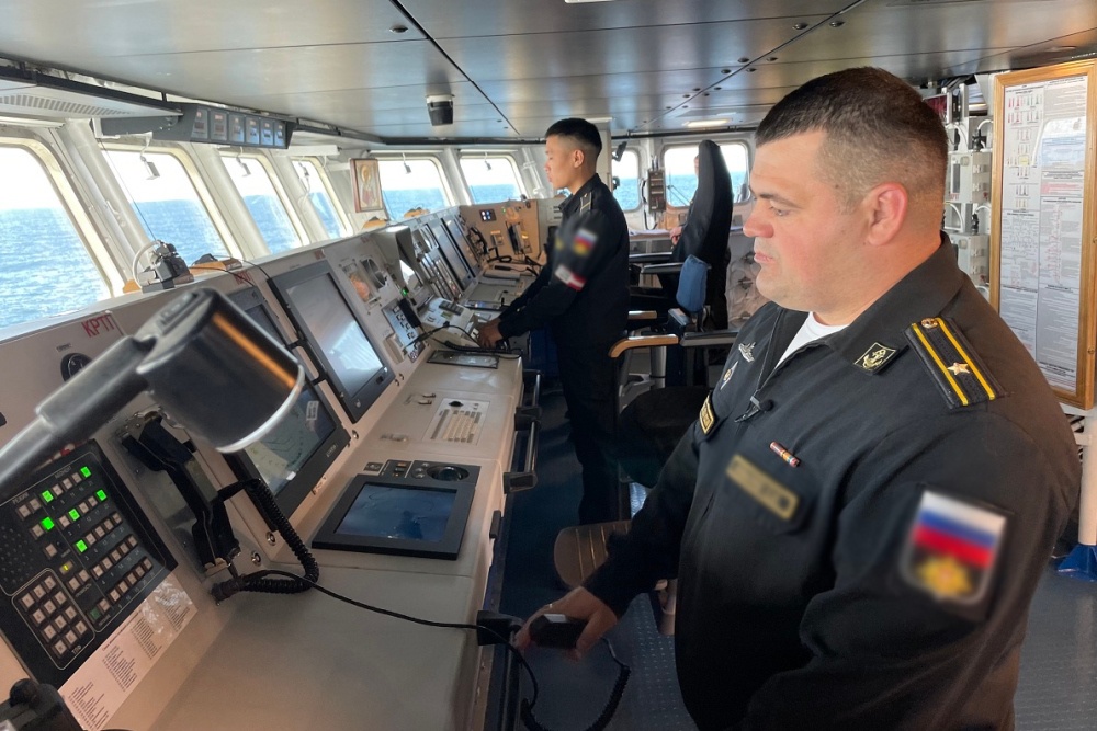 "Специалисты из состава экипажа, используя средства радиоэлектронной борьбы, взяли беспилотный летательный аппарат на сопровождение и обезвредили его", - говорится в сообщении пресс-службы Восточного военного округа.