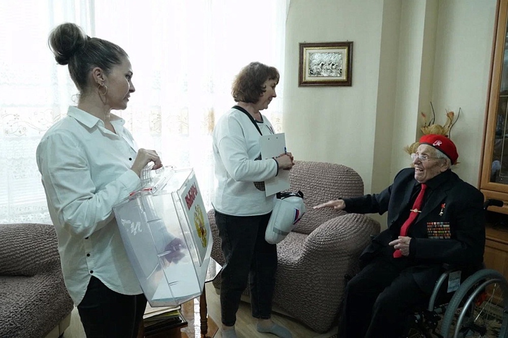 Члены участковой избирательной комиссии приехали к ветерану со специальной переносной опломбированной урной для голосования и объяснили правила заполнения бюллетеня.