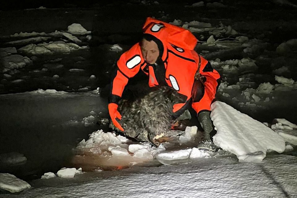 На помощь пришли сотрудники Поисково-спасательного отряда Управления гражданской защиты Уфы. Один из них в гидрокостюме зашел в реку, вытащил обессилившую на тот момент собаку из полыньи и на руках донес до берега. Животное забрали к себе домой неравнодушные очевидцы.