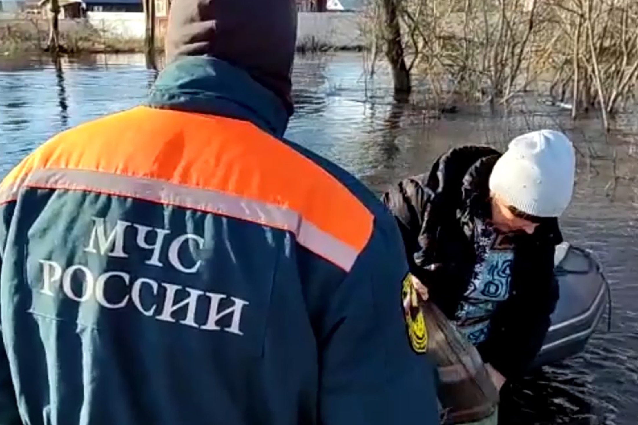 "Спасатели МЧС России помогают жителям собрать вещи, покинуть затопленные участки, перевозят в пункты временного размещения", - сказано в сообщении МЧС.