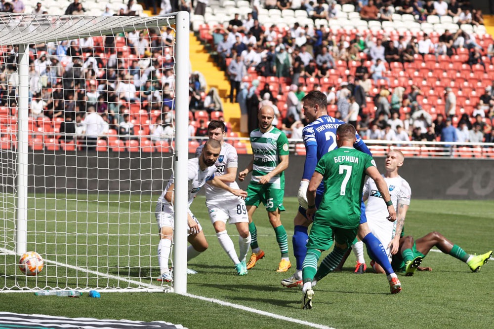 Вскоре именно с этого фланга последовала результативная атака "Ахмата". Бернард Бериша прорвался к углу вратарской, его прострел прервал защитник, но албанский форвард первым оказался у мяча и пробил. Голкипер гостей Артур Нигматуллин удар парировал, а Мохамед Конате при добивании с трех метров не промахнулся - 1:0, 25-я минута.