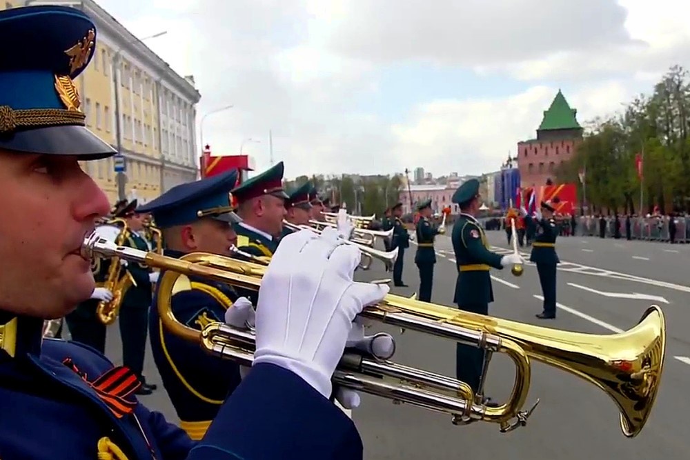 Всего за годы Великой Отечественной военкоматами области было мобилизовано 822 тысячи горьковчан, сформировано 79 соединений и частей Красной армии. О том, где они воевали, зрителям парада напомнили штандарты фронтов: Карельского, Ленинградского, 1-го Прибалтийского, 1-го, 2-го, 3-го и 4-го Украинского, 1-го, 2-го и 3-го Белорусского.