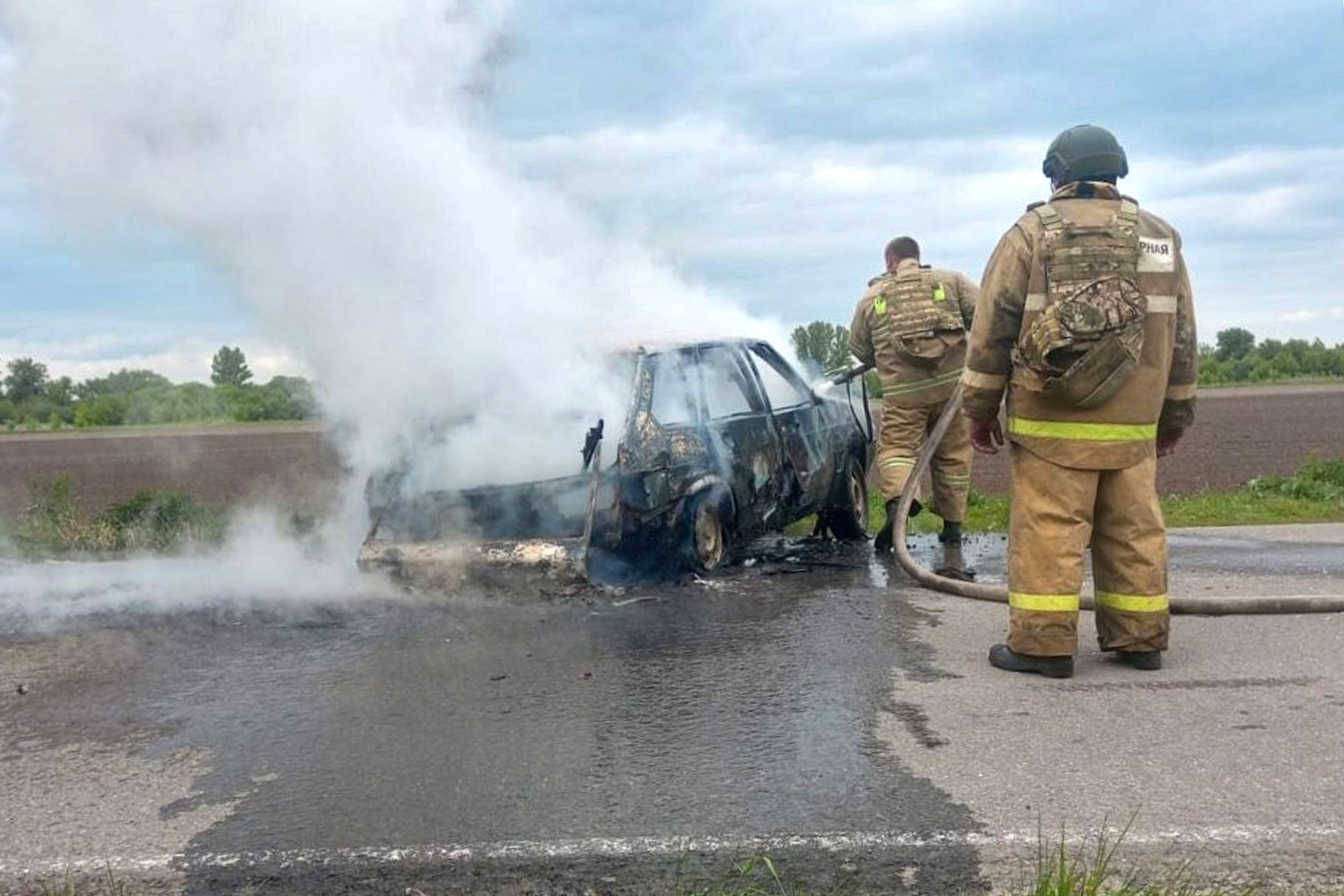 Подвергшиеся нападению машины загорелись и были потушены силами прибывших на место пожарных расчетов.