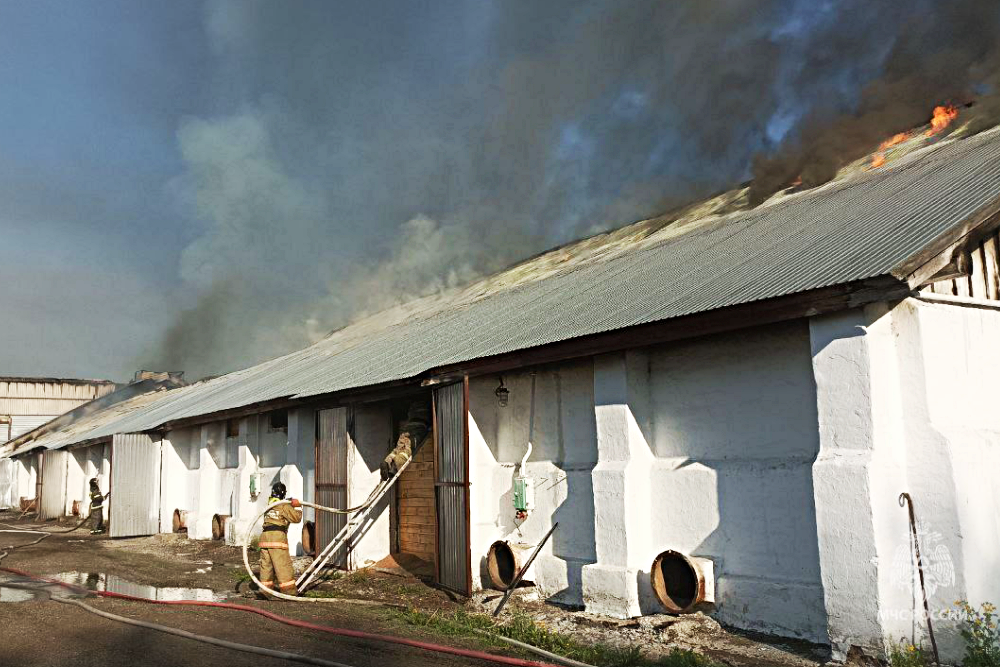 В селе Атаманово горит склад. Площадь пожара составляет полторы тысячи квадратных метров.