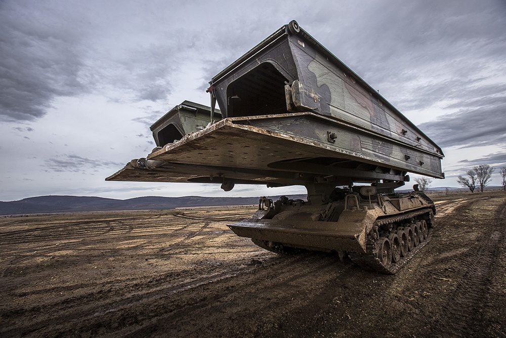 Длина моста позволяет технике весом до 50 000 кг преодолевать препятствия шириной до 21 м. Мощность двигателя - 830 л.с. Максимальная скорость по шоссе - 62 км/ч. Экипаж - два человека.
