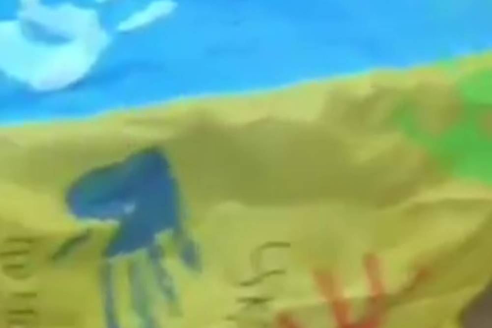 Необычную находку продемонстрировал на видео в своем Telegram-канале сам командир "Аид". На полотне много отпечатков детских ладошек и надписи на украинском: "Победы русским", "Успехов", "Пусть вас хранит Бог", "Мы с вами".