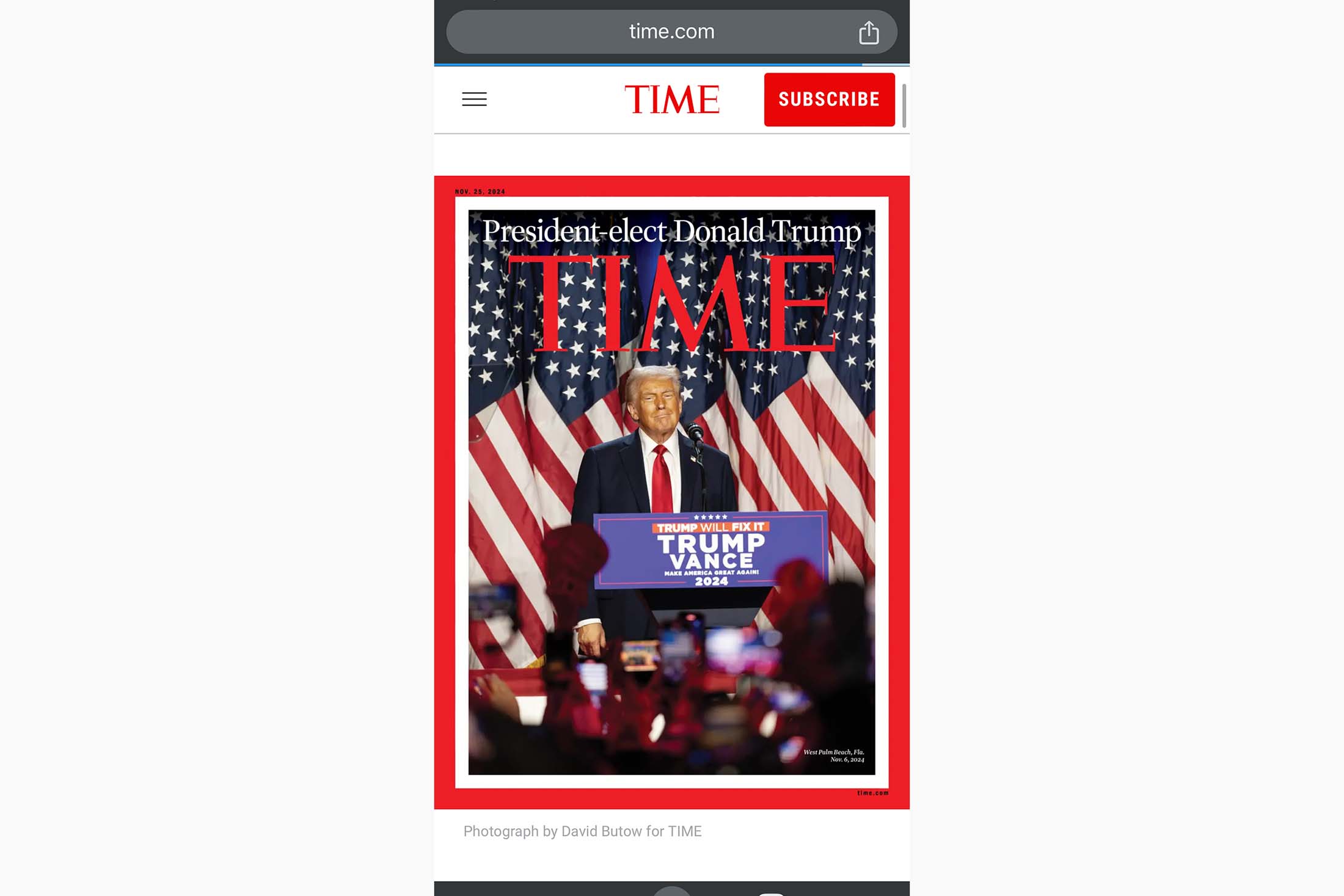 Издание уже опубликовало обложку нового выпуска на своем сайте, взяв фото Трампа с его победного обращения к сторонн