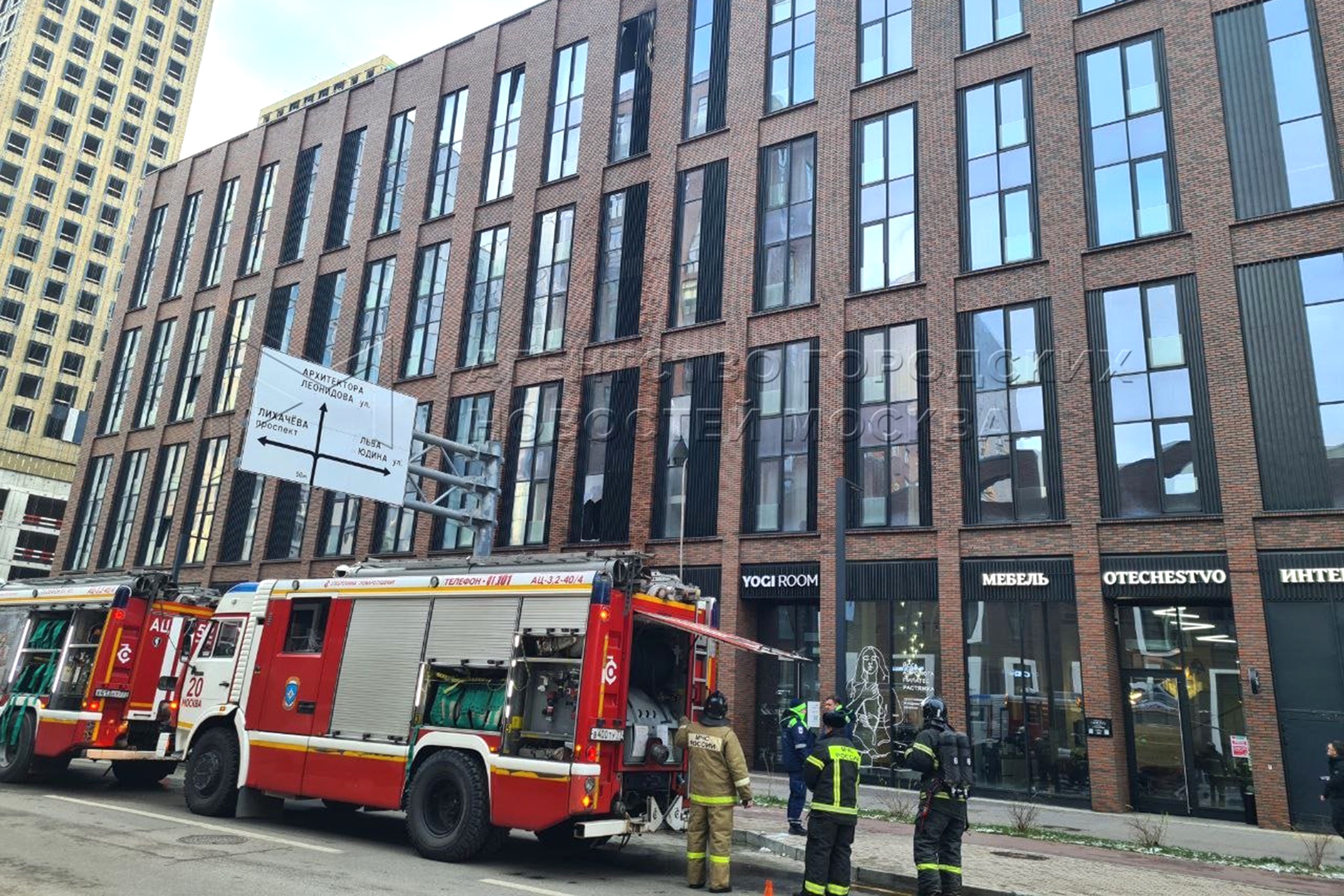 По предварительным данным, возгорание произошло в одном из корпусов на улице Архитектора Щусева. Огонь виден между третьим и седьмым этажами.