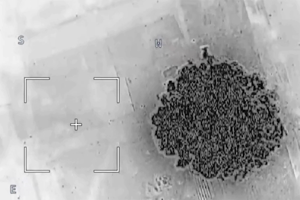 Снятое с беспилотника видео запечатлело непосредственно пункт временной дислокации противника, а также перемещение по его территории личного состава и техники. Затем в объектив камеры попал момент ракетного прилета и последовавший за ним взрыв.