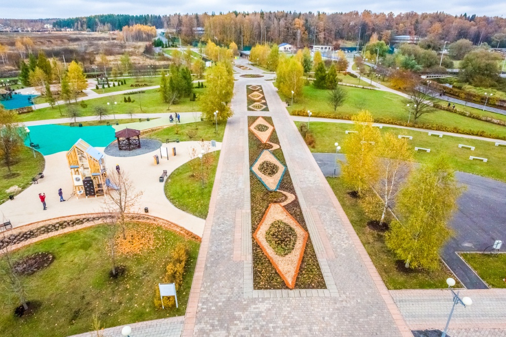 У Алешиного ручья поставили игровые комплексы, в спортивной зоне напротив "Снегирь Арены" обновили покрытия и ограждения многофункциональной площадки и полей для волейбола и футбола.