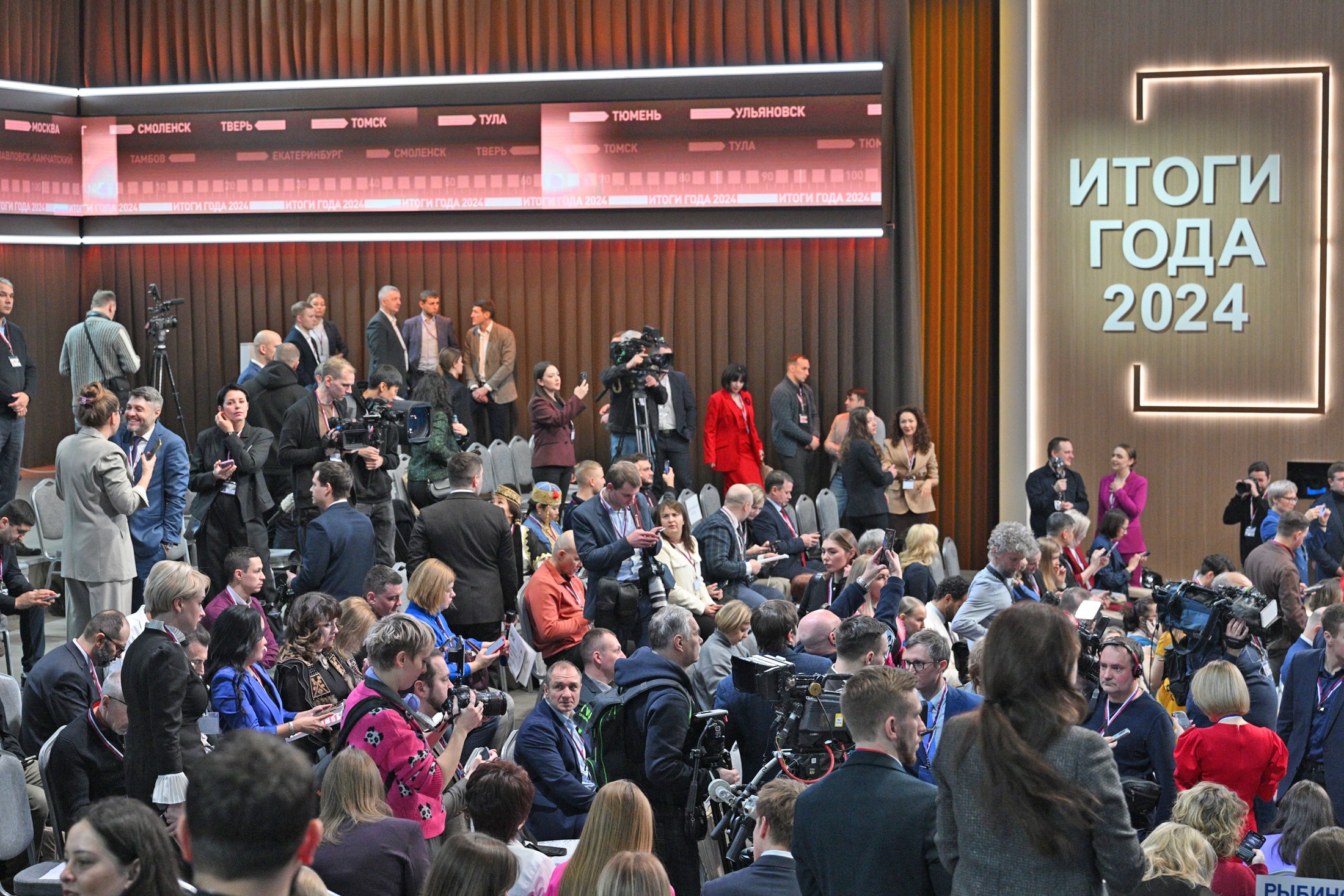 Очередь из журналистов, которые приехали сюда со всей России, выстроилась к Гостиному двору уже с самого утра.