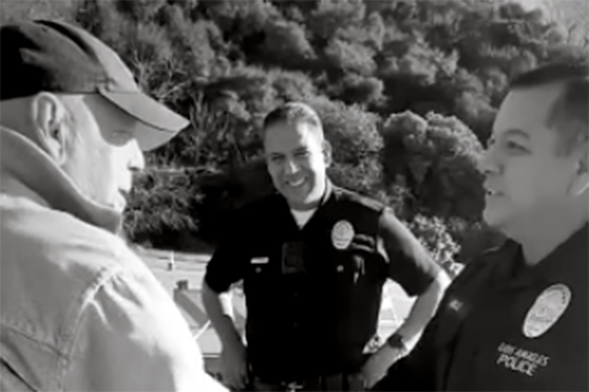 На кадрах Уиллис встречается с офицером полиции Лос-Анджелеса и пожимает ему руку.