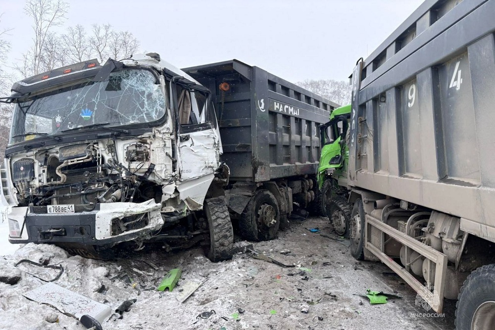 Авария случилась днем 20 января на 22 километре трассы Елизово - Паратунка. По уточненной информации краевой Госавтоинспекции, 37-летний водитель самосвала Shacman не справился с управлением и выехал на встречку, где и врезался в грузовик той же марки.