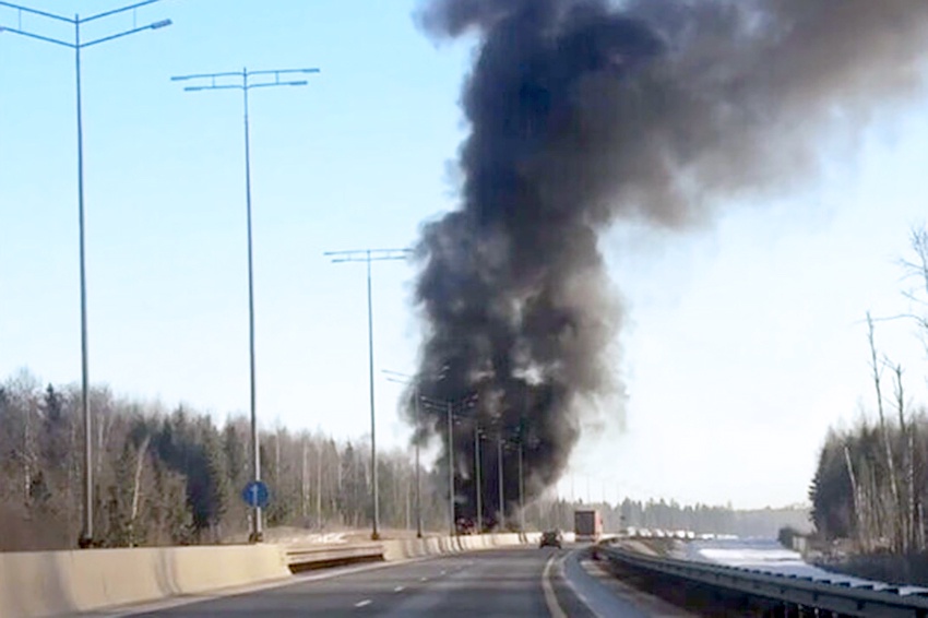 Инцидент произошел на территории Дмитровского городского округа. Фура остановилась на внешней стороне в правом ряду, огонь полностью объял грузовик.