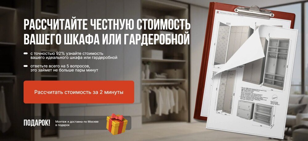 Прямо сейчас вы можете пройти тест на сайте bmf1.ru за 2 минуты и узнать честную стоимость вашего будущего шкафа или гардеробной с точностью 92%. Сейчас действует акция: доставка по Москве и монтаж мебели в подарок для тех, кто успеет оставить заявку на расчет проекта мебели до указанной на сайте даты.