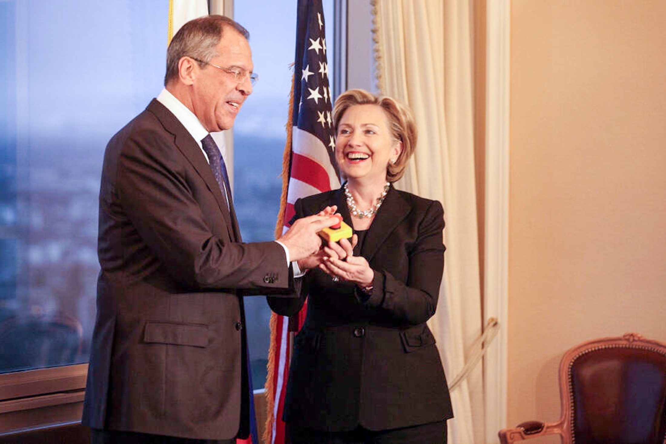 В ответ министр обороны США опубликовал фотографию Клинтон с главой МИД России Сергеем Лавровым. На нем они держат в руках красную кнопку.