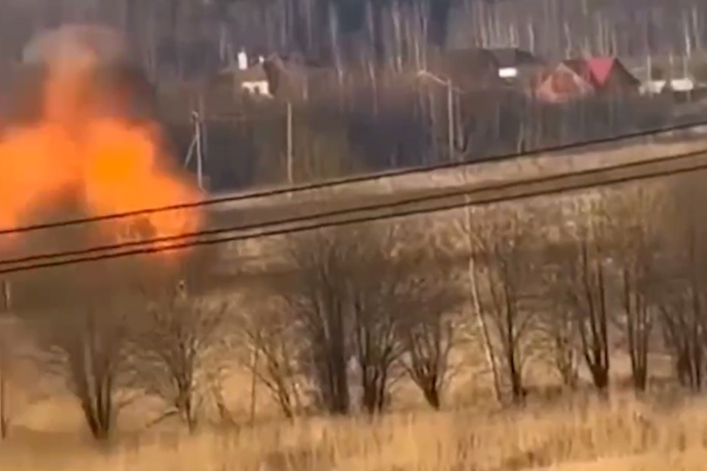 Описывая дугу, он задел ЛЭП. Судя по вспышке, произошло короткое замыкание, после чего БПЛА рухнул рядом с железной дорогой и взорвался.