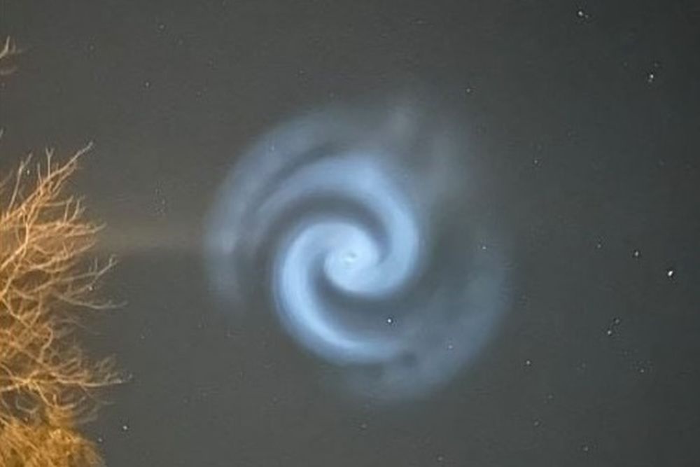 "Сегодня вечером в небе над Великобританией были замечены загадочные спирали, которые, по всей видимости, представляют собой замерзшее топливо из ракеты SpaceX", - говорится в публикации.