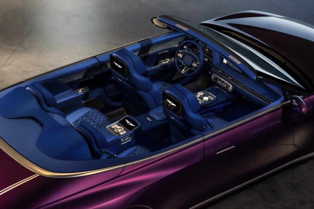 Салон купе вдохновлён оливковыми деревьями и сочетает в себе зелёную и коричневую кожу. Мотивы в виде листьев украшают дверные панели, на сидениях расположена стёганая строчка. Интерьер кабриолета оформлен в синем цвете, а его кузов выкрашен в цвет давленого винограда.