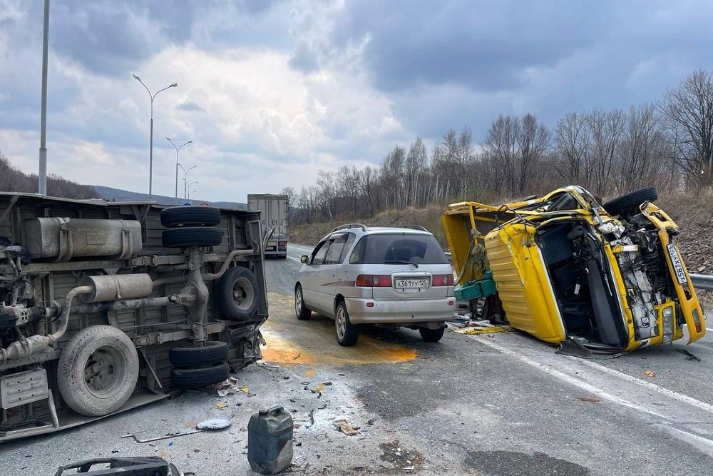 В Приморье в ДТП перевернулось сразу три грузовика