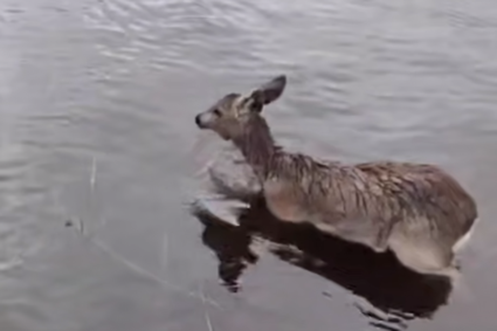 Сотрудники лесничества Михаил Наконечников и Михаил Смирнов патрулировали леса в районе берега реки. В какой-то момент они заметили, что маленький детеныш косули из последних сил барахтается среди ледяных глыб в воде. Рядом с ним уже кружили вороны.