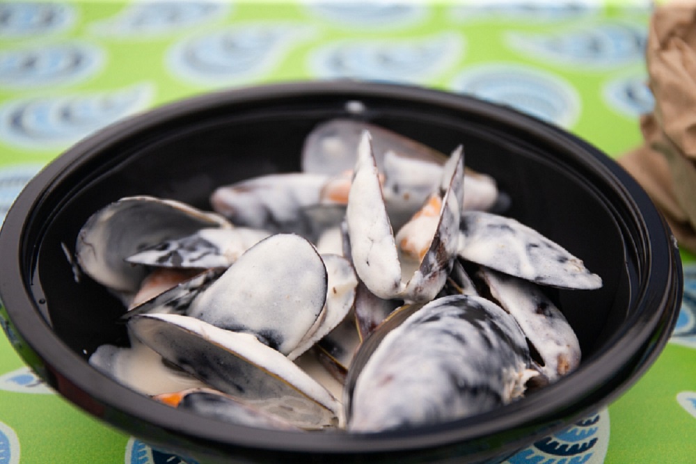Так, гостям в разные годы предлагали не только собственно этого моллюска с разными соусами (в том числе и из сгущенки), но и пончики, паштеты, крем-супы и роллы с мидией и из мидии. Правда, практика показывает, что фаворитами меню обычно становятся более традиционные блюда: свежие мидии в сливочном, тайском соусах и соусе на основе черемши.