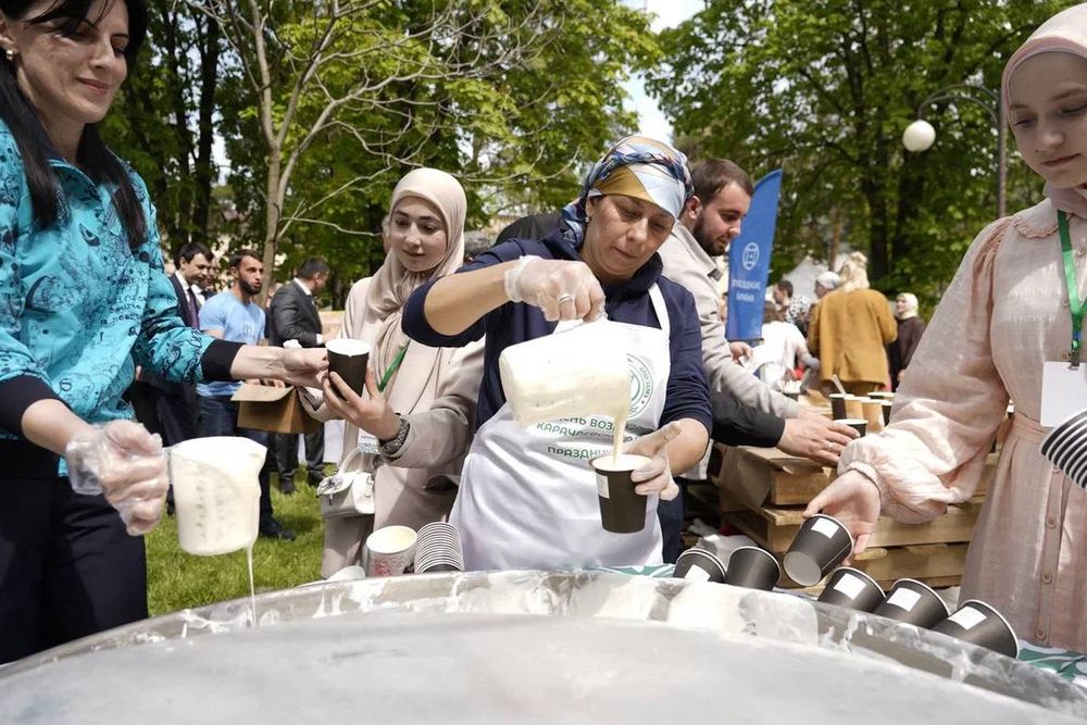 Главным символом кулинарного события стала 500-литровая чаша айрана, приготовленная по старинному рецепту, и более 10 тысяч хычинов, которыми угощали всех желающих.