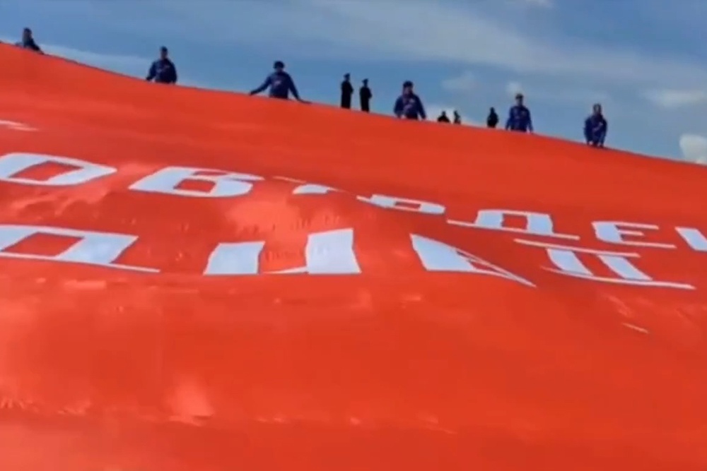 Развернутое на памятнике "Саур-Могила" полотнище ознаменовало акцию "Непокоренные". В ее рамках знамя Победы проследует из ДНР по 14 городам России и Беларуси. Здесь его доставят в Брест. Затем знамя Победы направится в Крым, где акция финиширует в Севастополе в конце мая. В общей сложность знамя Победы преодолеет свыше 5000 километров и побывает в Ростове, Новороссийске, Волгограде, Пскове и Санкт-Петербурге. Для его транспортировки создан специальный контейнер.