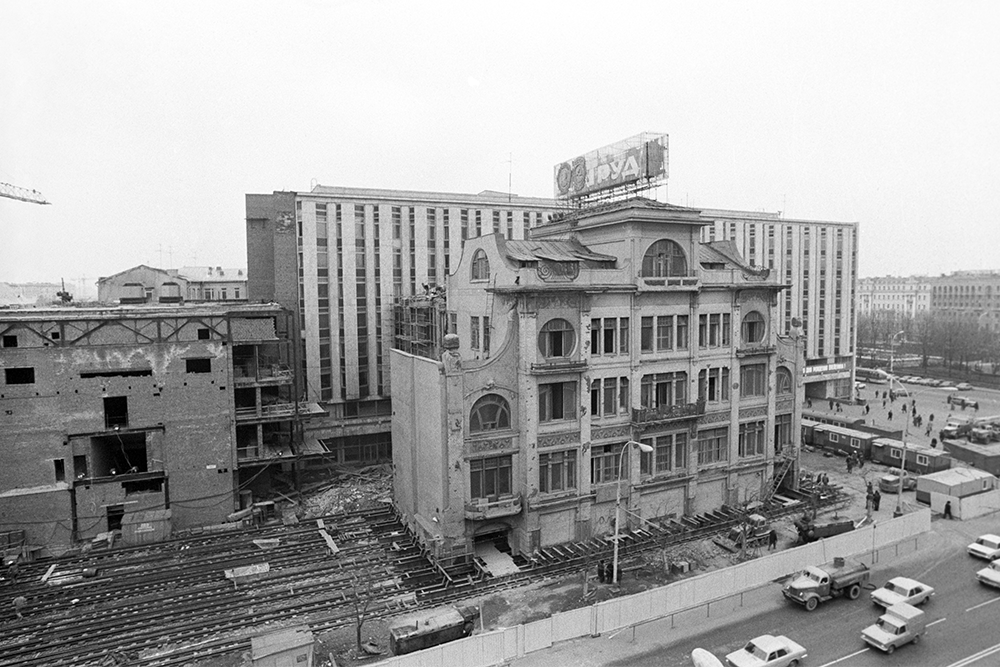 В послевоенные годы перемещения зданий почти не практиковались. Только в 1970-1980-х переехали сразу несколько строений: особняк Сытина на Тверской, усадьба на Люсиновской улице. В 1983 году инженеры разрезали зрительный зал МХАТа в Камергерском переулке и увеличили его, отодвинув сцену на 13 метров.
