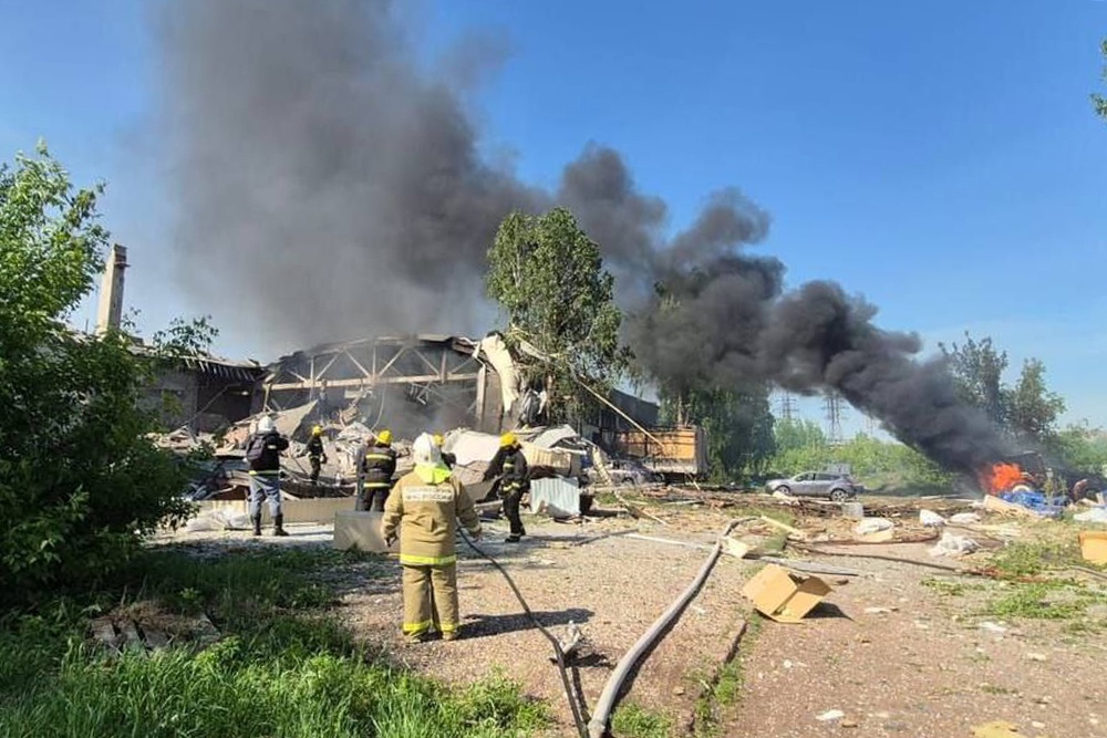 По предварительной оценке, на заводе произошла разгерметизация печного оборудования с последующим разрушением здания и пожаром.