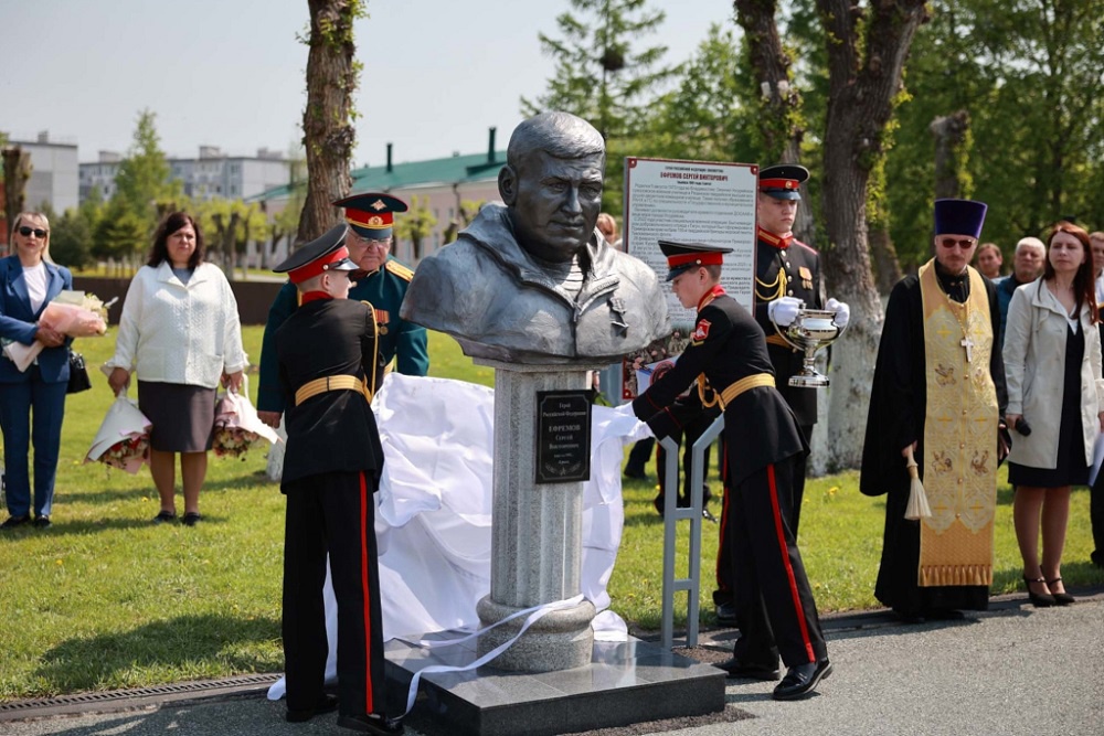 Вице-губернатор, организатор и командир добровольческого батальона "Тигр" Сергей Ефремов окончил Суворовское училище в городе Уссурийске в 1991 года. После гибели в учебном заведении было принято решение увековечить память о своем героическом выпускнике, установив его бюст на Аллее Героев.