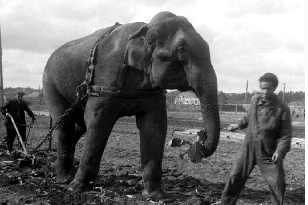 В годы войны в Омск был также эвакуирован знаменитый цирк Александра Корнилова, в хозяйстве которого было 11 слонов. Они, на удивление, многое умели, в том числе вместе с балеринами кружиться в вальсе. Чтобы их прокормить, поклонники цирка в рощах заготовляли березовые веники. А в самом центре Омска прямо у киноцентра Маяковский даже разбили огород. Насытить взрослого слона, которому ежедневно требуется не менее 50 килограммов пищи и 100 литров воды, совсем непросто. Впрочем, животные, как будто понимая обстановку, в долгу не оставались. Они не только поднимали дух бойцов во время представлений, но и пахали землю, таскали самолеты, занимались погрузочно-разгрузочными работами.