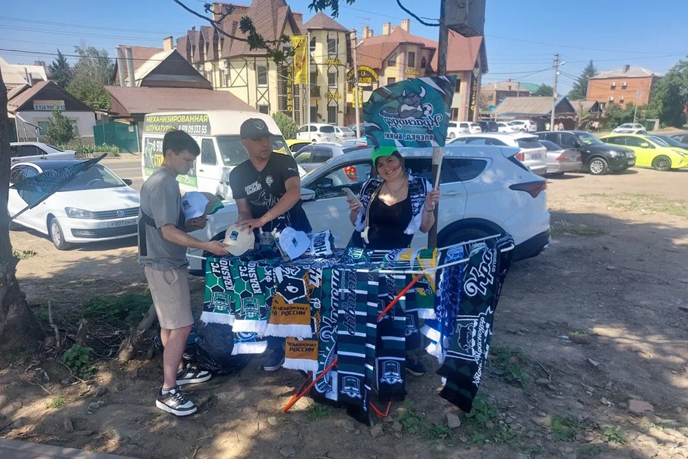 Ощущение большого футбольного события возникает уже на дальних подходах к арене. В тени деревьев, на перекрестках, дорожных обочинах идет торговля атрибутикой. Происходит это как-то по-доброму, по-домашнему. "Возьмите вот этот шарфик, смотрите, не мнется. Только вчера постирала", - уговаривает тетенька.