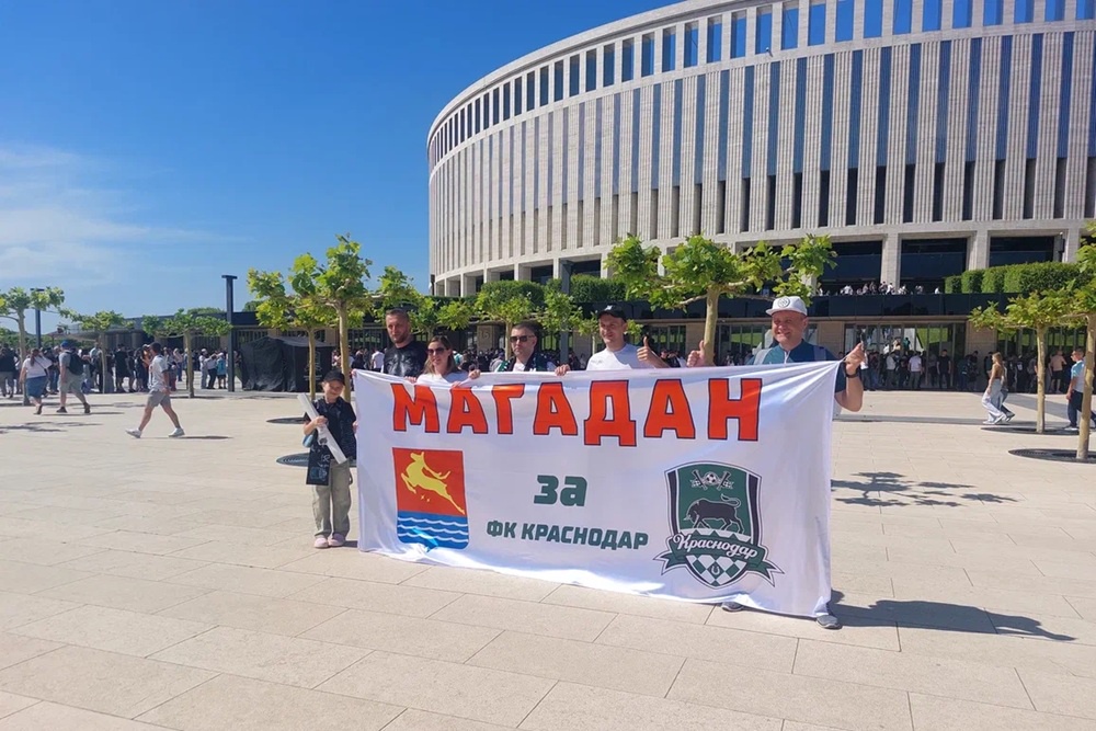 Возможное чемпионство "Краснодара" - событие планетарного масштаба. Убеждаешься в этом, когда видишь огромную растяжку с надписью "Магадан". "Ух ты, даже в Магадане за нас болеют", - удивляются прохожие. "И в Тольятти тоже", - кричит мужчина и просит магаданских болельщиков не расходиться для фото.