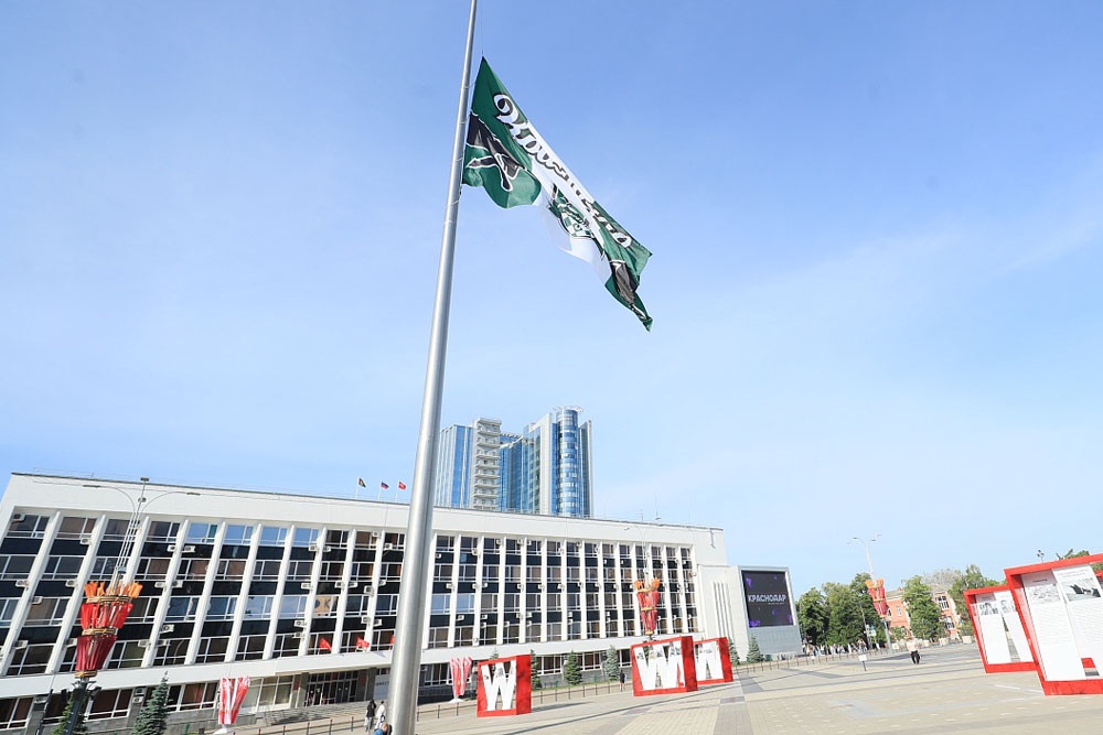 "Обычно над Главной городской площадью развевается флаг Краснодара. Сегодня мы подняли черно-зелёный флаг в поддержку родного футбольного клуба", - написал мэр в своем Telegram-канале.