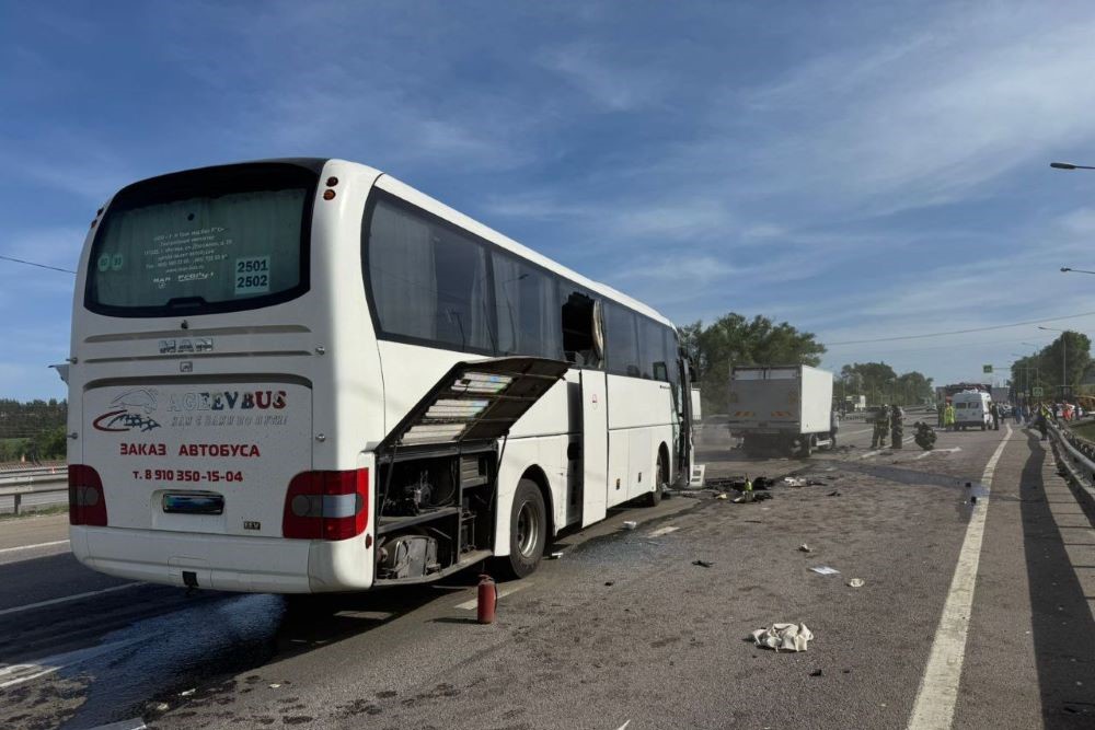 Днем 27 мая на 481 километре автодороги М-4 "Дон" рейсовый автобус столкнулся с грузовиком Dongfeng, который, в свою очередь, столкнулся с автомашиной КамАЗ.