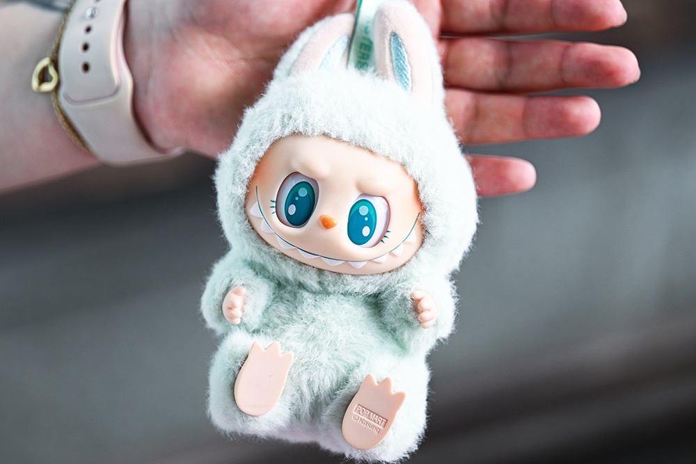Лабубу - пушистая кукла с похожими на заячьи ушами, большим ртом и зубами, как у акулы.