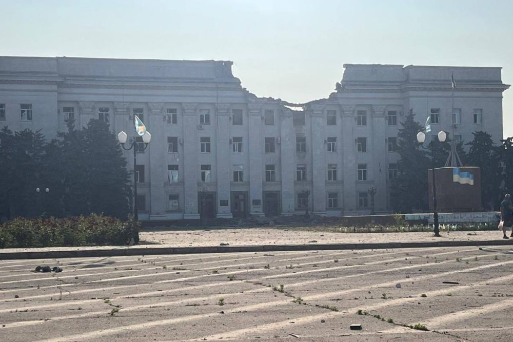 "Надкушенное" бомбой здание администрации Херсона сравнили с рекламой Apple