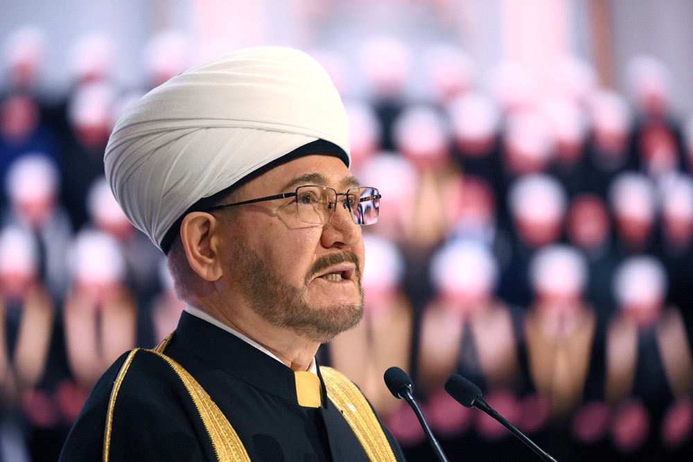 Главный муфтий также напомнил, что главным богатством российской земли является "ее многонациональный и многоконфессиональный народ, объединенный общими традициями, ценностями и устремлением к мирному созидательному труду".