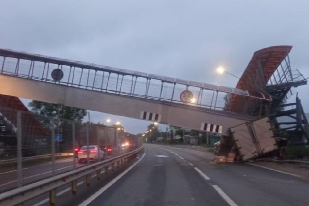 Как ранее сообщала "РГ", ЧП произошло на территории деревни Липна около трех часов ночи. По предварительным данным, грузовой "ГАЗ", ехавший в сторону Нижнего Новгорода, врезался в опору. Конструкция перехода была повреждена и опасно нависла над проезжей частью.