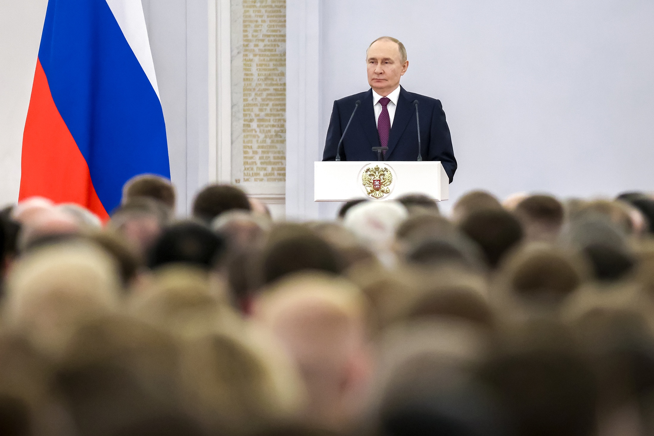 Встреча прошла в Георгиевском зале Кремля. "Этот величественный пантеон славы русского оружия напоминает о легендарных битвах и героях 1812 года, служит вдохновляющим образцом силы и несгибаемого духа многих поколений защитников Отечества", - отметил глава государства.