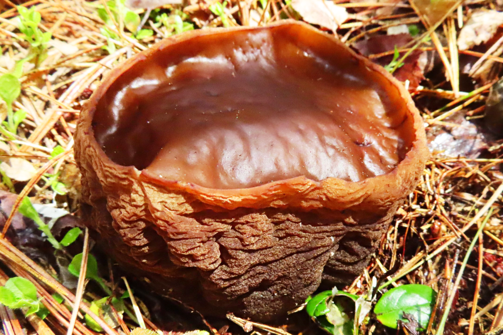 Одна из особенностей "молодильного гриба" - желеобразное, похожее на студень содержимое. Внешне он напоминает котелок с неким варевом внутри.