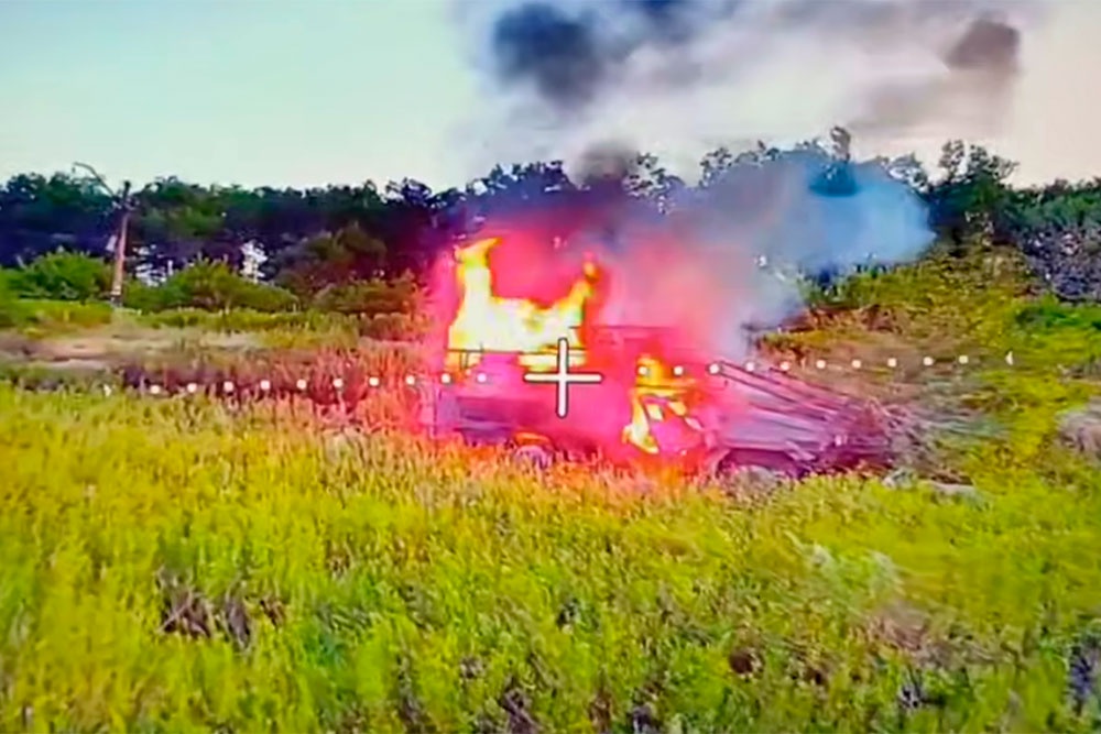 Прилетевший для оценки обстановки другой беспилотник обнаружил, что вражеская машина полностью объята пламенем: загорелось не только отделение управления, но и отсек, где находился десант.