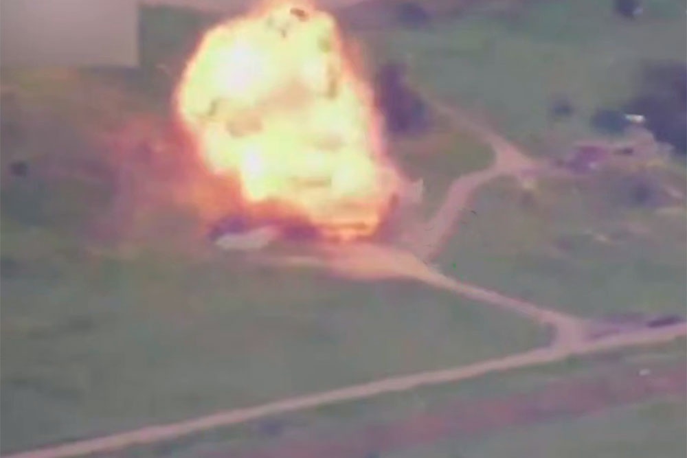 В результате точного попадания дрона произошел мощный взрыв - в небо взметнулся огненный гриб, а последующее видео, снятое с разведывательного БПЛА, подтверждает полное уничтожение сооружения. На месте удара остались лишь выжженная земля, обломки и остовы сгоревших автомобилей.